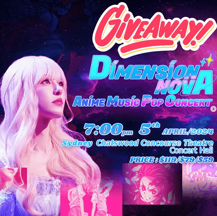 Attention all Sydney-siders, immerse yourself in the captivating world of anime music as talented artists take the stage at DIMENSION NOVA – ANIME MUSIC POP CONCERT. We've teamed up with Dimension Nova Anime Music Pop Concert for a chance to win 1 of 10 tickets to their concert!